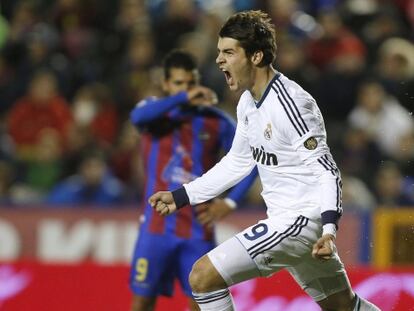 Un gol de cabeza del canterano le da la victoria al final al Madrid ante un tenaz Levante y en un campo anegado (1-2) por la lluvia El técnico rectifica para dar entrada a Kaká y retrasar a Albiol al lateral derecho Cristiano Ronaldo, víctima de un codazo de David Navarro