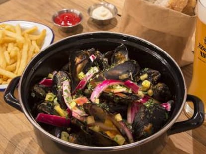 Un restaurante en la calle de Orellana está especializado en estos moluscos, servidos al estilo belga