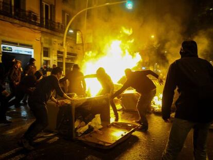La protesta deriva en quemas de contenedores y choques con los Mossos d'Esquadra