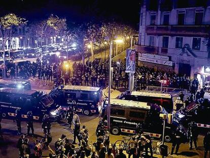 Los Mossos d'Esquadra detuvieron a 23 personas en Sants Se repite la quema de contenedores y los daños en entidades bancarias