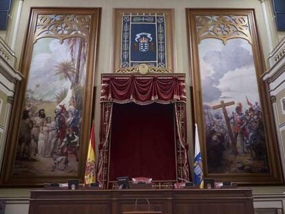 La Cámara se plantea cubrir durante los plenos dos polémicos lienzos sobre la conquista del archipiélago