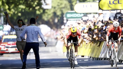 Ciclistas y ‘gentlemen’: Pogacar se cae al final de la etapa del Tour de Francia y los rivales le esperan