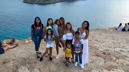 La modelo disfruta de unas vacaciones en Ibiza con el hijo mayor del futbolista y su amiga Daniela Ospina, exesposa de James