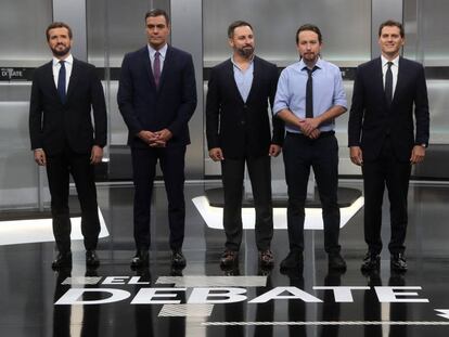 Pedro Sánchez (PSOE), Pablo Casado (PP), Albert Rivera (Ciudadanos), Pablo Iglesias (Unidas Podemos) y Santiago Abascal (Vox) protagonizan un debate para intentar atraer a los indecisos