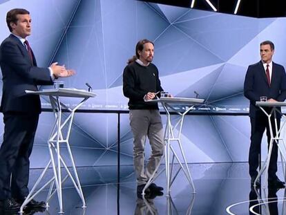 Sánchez, Casado, Rivera, Iglesias y Abascal se ven las caras por primera vez en el único debate electoral de la campaña