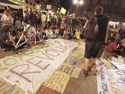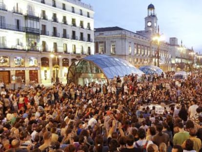El movimiento ciudadano que prendió con la marcha del domingo deriva en una concentración Dos centenares de personas se organizaron ayer para pasar la noche en la Puerta del Sol