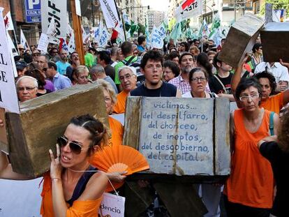 Miles de usuarios y de trabajadores del sector protestan en Valencia por el retraso en las ayudas de la Generalitat de todo el presupuesto de 2012