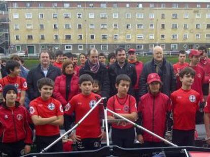 El medio centenar de niños dela Escuela de Remo recibe la visita del alcalde de Bilbao