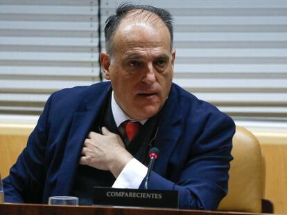 El presidente de la Liga responde en la Asamblea sobre los contratos de Telemadrid con Atlético y Getafe