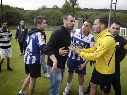 Juan Domínguez, uno de los capitanes del Deportivo, entiende a los radicales que asaltaron el campo de entrenamiento del conjunto gallego