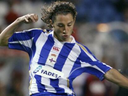 El lateral canario del Deportivo, de 36 años, logra su tercer gol en 15 temporadas