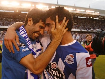 El equipo coruñes celebra la vuelta la máxima categoría del fútbol español