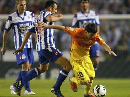 El Barcelona, huérfano en defensa y letal arriba con un nuevo triplete de Messi, se impone a un aguerrido Deportivo