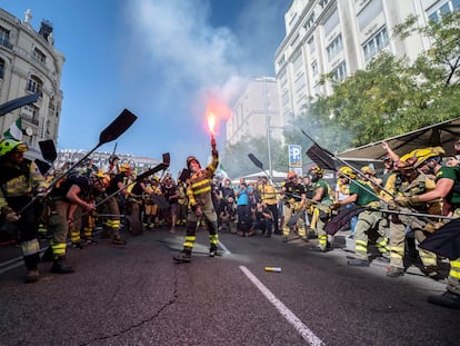 Una manifestación de trabajadores de toda España exige condiciones laborales dignas, una mejor gestión y más formación para combatir los incendios, cuyo comportamiento está modificándose con el cambio climático