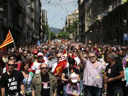 Unes 9.000 persones, entre elles desenes de polítics, marxen el Dia Internacional del Treball a la capital catalana