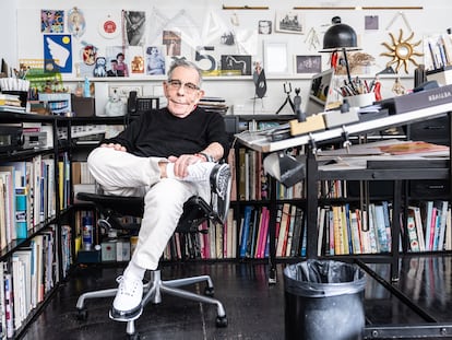 El autor del grafismo de buena parte de la filmografía del cineasta manchego y de las carátulas esenciales de la Movida repasa su obra y revela sus bocetos en un libro