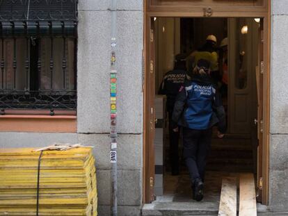 Evacuado un edificio de viviendas en Chamberí tras la caída de un muro por el viento