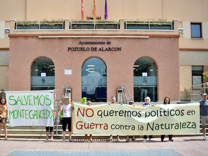 Integrantes de la plataforma Salvemos Montegancedo irrumpen en el Ayuntamiento para pedir la paralización de una urbanización de lujo de 1.050 viviendas en medio de un paraje natural