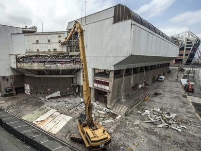 Las grúas empiezan a derribar la zona de las taquillas El club prevé que estas labores finalicen, aproximadamente, a finales de agosto