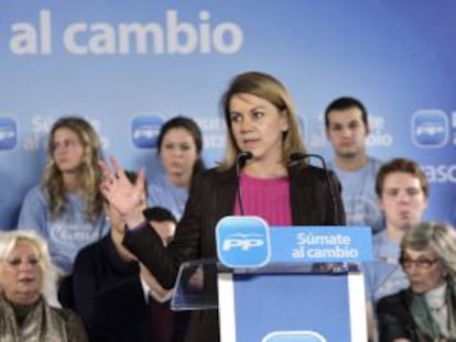 La presidenta de Castilla-La Mancha cree que "la mayoría lo entenderá" La secretaria general del PP reprocha al PSOE que su eslogan "alude a la lucha y a la pelea"