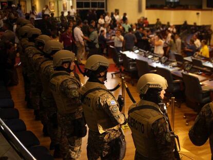 El mandatario irrumpe arropado de policías y militares en la Asamblea tras la negativa de los diputados a aprobar un préstamo clave. La oposición denuncia un "autogolpe"