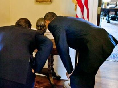 La Casa Blanca y la Embajada británica tratan de aclarar una vieja polémica sobre el destino de la escultura del ‘Premier’ avivada por Romney durante su viaje a Londres