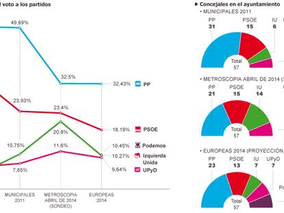 Evolución por partidos y proyección de concejales en el Ayuntamiento