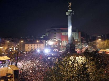 Decenas de miles de franceses se congregan en la plaza parisina para celebrar la victoria del socialista Hollande