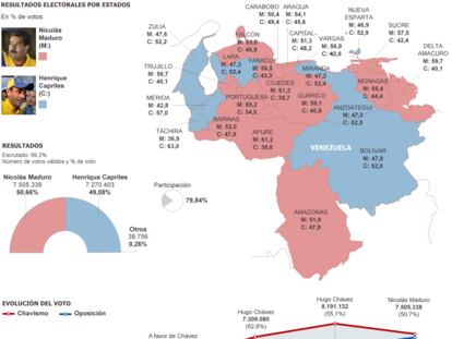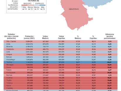 Maduro ha basado su victoria en los estados con menos población, donde ha obtenido una mayor ventaja con respecto a Capriles