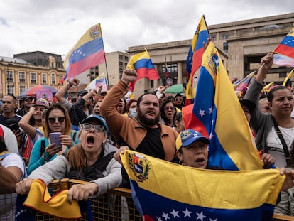 Cerca de 2.000 migrantes venezolanos se encontraron en la Plaza de Bolívar de Bogotá para rechazar los resultados electorales y expresar su descontento con la postura diplomática del presidente de Colombia