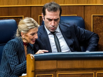 La vicepresidenta arremete contra el ministro de Economía por lo que considera un cambio de postura del PSOE para retrasar el recorte de jornada a 2026 y un incumplimiento del acuerdo de Gobierno
