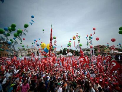 Más de 100.000 trabajadores marchan en la capital en la primera movilización unitaria en10 años Las organizaciones piden a Letta que apruebe medidas eficaces