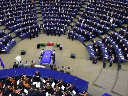 La canciller alemana, los expresidentes Clinton y González, los líderes de la UE y otros dirigentes despiden en Estrasburgo al mandatario de la reunificación alemana