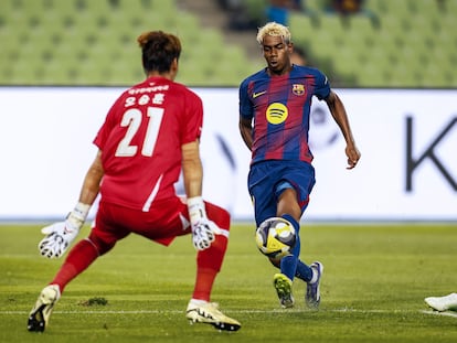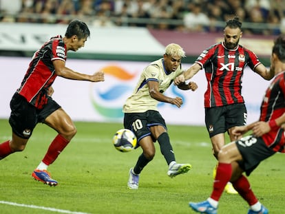 Los azulgrana derrotan por 3-7 al equipo surcoreano con la mejor versión individual del extremo y la colectiva del delantero valenciano
