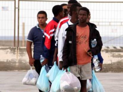 La oleada de este fin de semana satura centros de internamiento y calabozos La mayoría de 'sinpapeles' llega a bordo de balsas hinchables