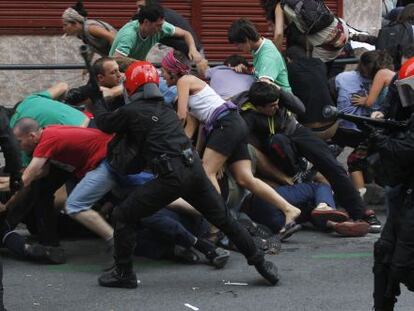 La Ertzaintza ha utilizado material antidisturbios, mientras algunos alborotadores han atacado a dos motoristas y causado daños