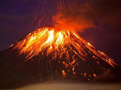 El volcán ha mostrado en las últimas horas un gran espectáculo de lava, rocas y ceniza