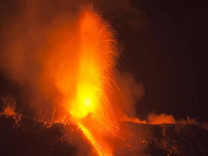 El volcán activo más alto de Europa expulsa un chorro de lava visible desde las poblaciones cercanas
