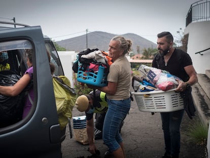 Las familias del barrio de Todoque, en La Palma, rescatan entre nervios y lágrimas los objetos y documentos antes de que la lava engulla sus hogares