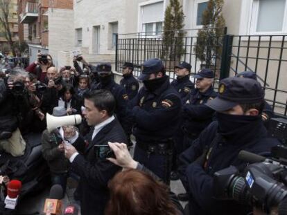 Unos 200 miembros de la PAH participaron en una protesta ante la casa de la vicepresidenta La policía abrió diligencias por un posible delito de amenazas contra 27 de los congregados El Gobierno multó a 18 participantes, entre ellos el ex secretario general de AP Jorque Verstrynge