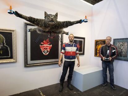 El artista holandés Bart Jansen transformó el felino, llamado Orville, en una pieza de exhibición después de que lo atropellara un coche