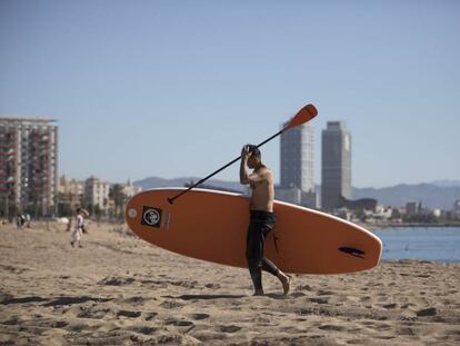 Centenars d'esportistes espremen a la platja de Barcelona cada minut a l'aire lliure que permet l'estat d'alarma