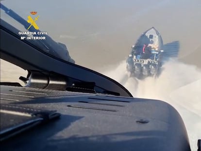 La intervención de dos lanchas rápidas y un helicóptero se salda con la detención de cuatro presuntos narcos frente a las costas de Chipiona