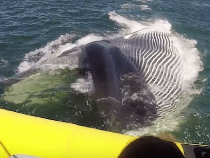 Un gran cetáceo sorprende a un grupo de turistas en Canadá al pasar rozando su embarcación
