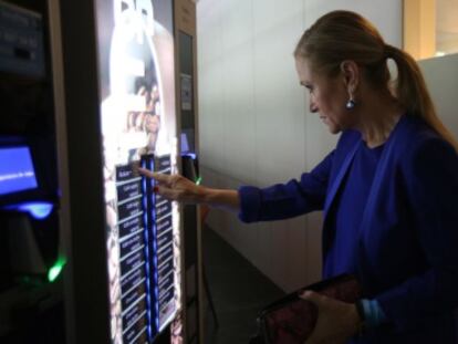 Las candidatas del PP a la Alcaldía de Madrid y la Presidencia de la Comunidad, Esperanza Aguirre y Cristina Cifuentes, se encuentran en la redacción de EL PAÍS e intercambian pulseras electorales
