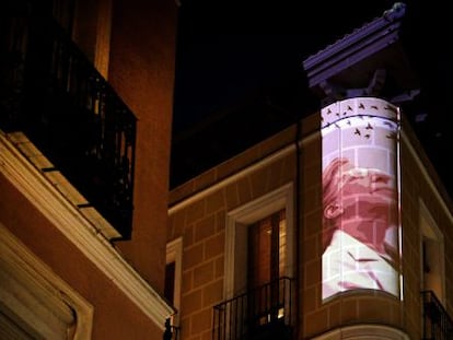 El grupo Vértice Curvo proyecta cada noche sobre un edificio la cara de la candidata