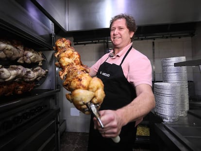José Alberto Sánchez Zapata regenta el negocio que fundó su padre, el asador de pollos El Murciano en Lavapiés, donde se despachan pollos sin descanso