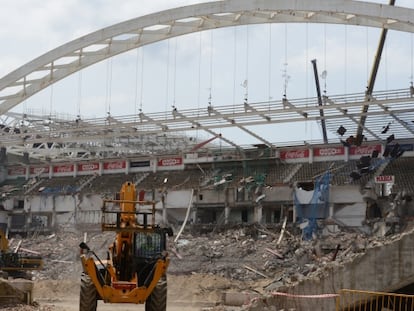Las grúas empiezan a derribar la zona de las taquillas El club prevé que estas labores finalicen, aproximadamente, a finales de agosto