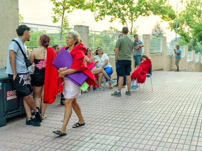 Con las calles cortadas por la Policía y los helicópteros trabajando en la extinción, los vecinos esperan para acceder a sus viviendas para saber si se han quemado