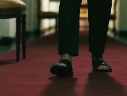El anuncio muestra de espaldas a un actor parecido a Morales en el palacio de La Paz y viste el calzado típico de los campesinos pobres